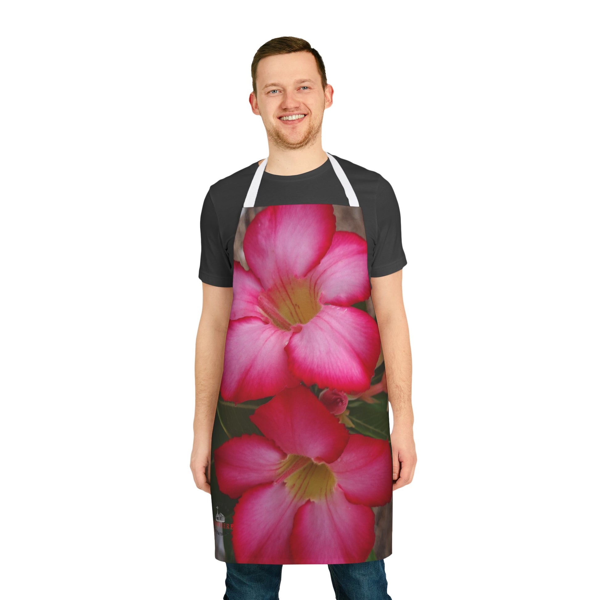 Elevate your kitchen style with the elegant Desert Rose Apron. Featuring a stunning design of two rich pink Desert Rose flowers, this apron brings a touch of natural beauty and sophistication to your cooking space. The vibrant floral imagery is perfect for anyone who loves the delicate allure of desert blooms.